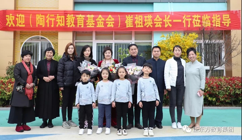 2019年4月11日,陶行知教育基金会发起人之一执行会长崔祖瑛先生、基金会理事长苏新颖女士一行来访正东方国际幼儿园(山东日照),山海天旅游渡假区教育局局长、社发局局长张敏;山海天教育局托幼办主任于世华;正东方教育集团董事长汤明心等相关工作人员陪同调研。